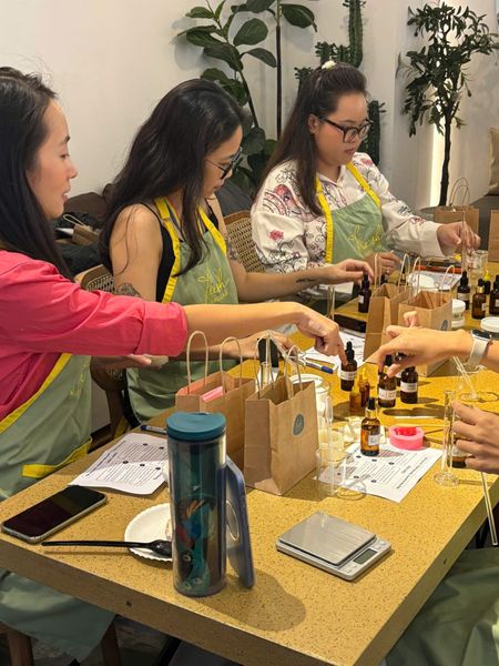 Nhân viên sẽ được học về đặc tính của từng loại tinh dầu và tự tay pha chế bình xịt phòng hoặc lăn tinh dầu trị liệu. Buổi workshop sáng tạo cho doanh nghiệp này cung cấp kiến thức thực tế về sức khỏe, giúp nhân viên giải tỏa nỗi lo hóa chất trong gia đình.